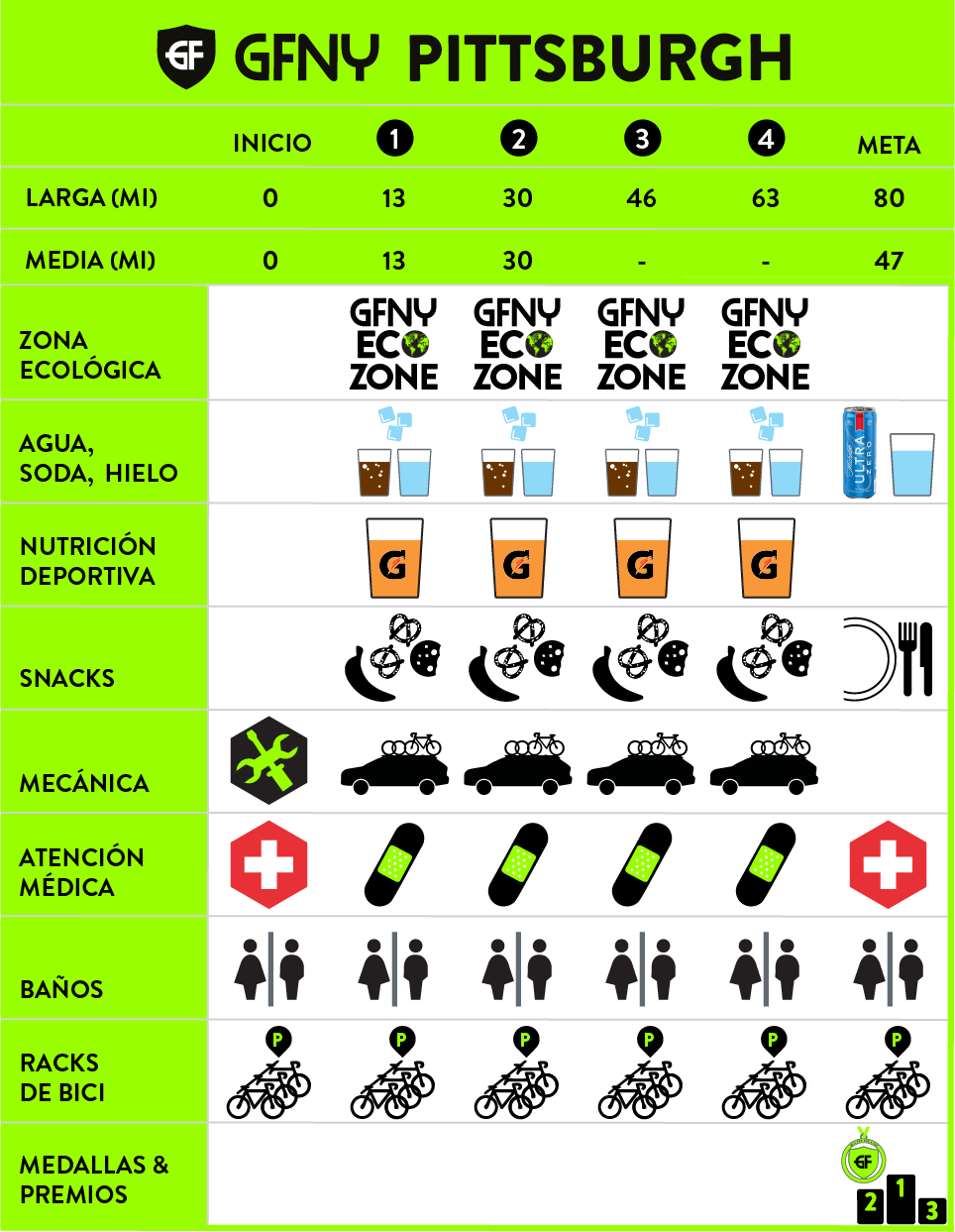 GFNY Pittsburgh-Monroeville te desafiará y te dejará sin aliento. La carrera comienza y termina en el Campus CCAC Boyce en Monroeville, a solo 15 minutos al este de Pittsburgh. El recorrido atraviesa los pintorescos condados de Allegheny y Westmoreland y ofrece una distancia media recreativa de 47 millas y una distancia larga competitiva de 80 millas. Las distancias pueden parecer cortas, pero el desnivel causado por las constantes colinas te hará sentir un dolor en las piernas. El recorrido te llevará por extensos y ondulados paisajes rurales, con granjas, ranchos, huertos, bosques y mucho más.